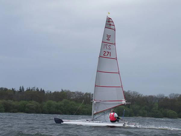 RELAY RACE The Relay Race provided a thrilling finish to the “Bala Gala”. As our Olympic relay team found, it was the changeover that was crucial. A spectacular hand over from Paul Ellis to Tony Costall could so easily have been disastrous, as Tony snatched the ball at speed on his leeward side while his windward hull lifted alarmingly. However, he scrambled back to windward just quickly enough to avert a capsize. This gave the Blue Team a healthy lead, but Nigel Harrison sailed heroically to be close on Tony’s heels at the windward mark. In the ensuing downwind duel Nigel just squeezed past to snatch victory on the line for the Yellows.