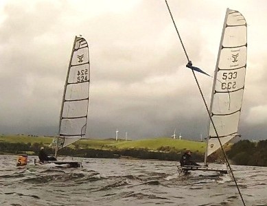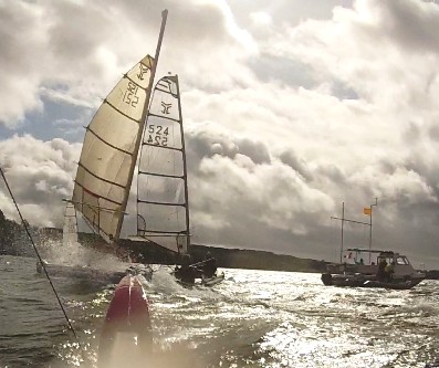 Alastair trying to keep Gareth (small rig) and George under his lee. Photo CSC Safety Rib with thanks)