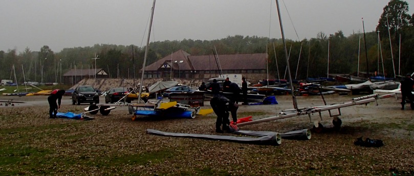 de-rigging in sheets of rain