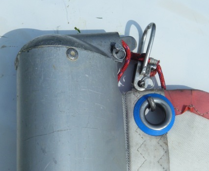 attached to the head of the sail (a stainless-steel loop on the