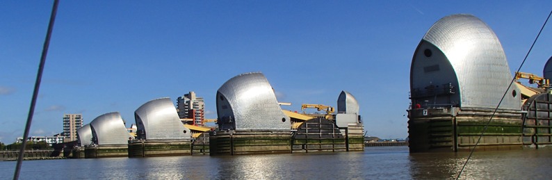 (Above) The ship which I gave careful precededence to through the Thames Barrier, with Canary Wharf in the distance, and the cable car across the Thames (one of the white elephants of Johnson's mayoralty, but intriguing to sail beneath.)