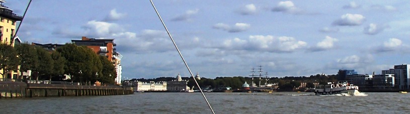 Then back past 02 and Canary Wharf, nearing Greenwich with (above) the first part of the fascinating Greenwich. waterfront: (left to right) Georgian houses and pub along Ballast Quay, then the power station built to run London's trams, looming over the 17th-century Greenwich Hospital for seamen replaced by the grand Naval Hospital (below, left) and a Mississippi paddle-steamer passing Cutty Sark.