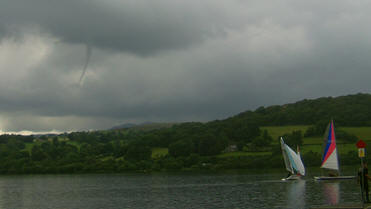 Funnel cloud near the lake before the start