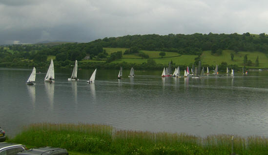 with one another. On the broad reach down the lake Gareth eased ahead of