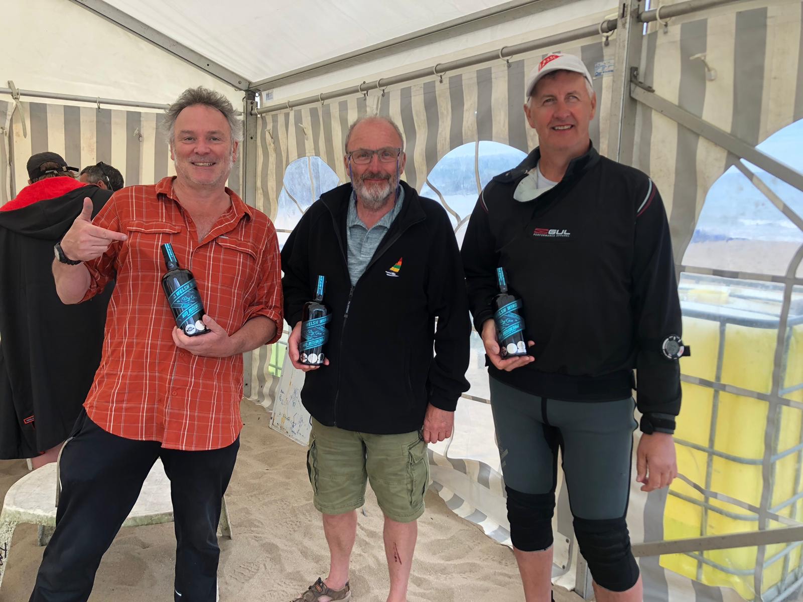 Mike Gough, Chris Phillips. Saturday The weather was warm with light winds. 3 Races each 40 minutes. Race 1 George led this race most of the was, followed closely by mike with Chris on his heals. Mike was close second until just before the finishing line he fluffed a tack and Chris sailed through to take second place. Race 2 There was no drama in this race, George led this race from start to finish followed closely by Mike and then Chris. Race 3 Chris got a great start to this race followed closely by George, Chris led the race until midway through when George took the lead they continued to swap places up to the last lap. On the last lap George managed to hold his lead and came in first, Chris came a close second with Mike on both their heals coming in third. The weather was cloudy, warm with light to medium