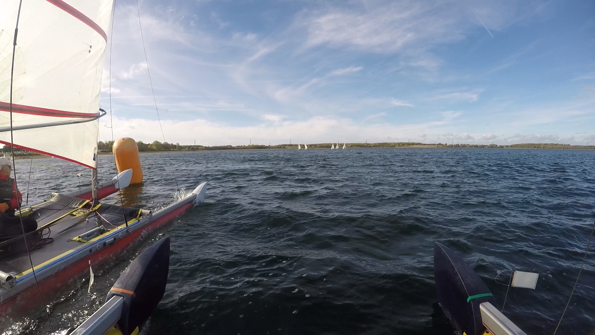 Race By going right up the first beat John was able to grab the lead at the windward mark just ahead of Gareth. George, Mike, Stuart and Syd then rounded in quick succession not far behind. John led Gareth all the way around the first lap until the gate when Gareth eased ahead and steadily increased his lead over the rest of the race. Meanwhile the rest of the fleet finished in the order they had rounded the first mark with very little place changing.